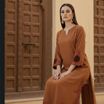 Crafted in premium fabric with a soft, elegant fall, this outfit features delicate embroidery detailing on the hem and sleeves, paired with a beautifully finished scalloped dupatta.